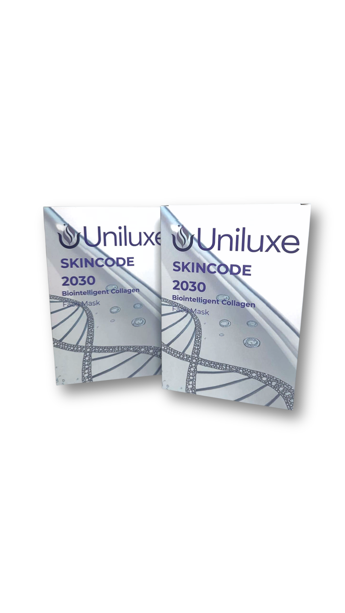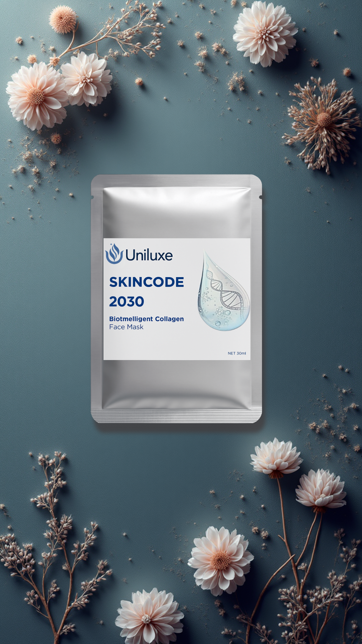 SKINCODE 2030 es una mascarilla facial de hidrogel con tecnología biointeligente que se adapta progresivamente a tu piel, liberando una potente combinación de ingredientes reafirmantes, hidratantes y regeneradores. Su fórmula avanzada incluye colágeno marino, ácido hialurónico, ceramidas y extractos de algas rojas.